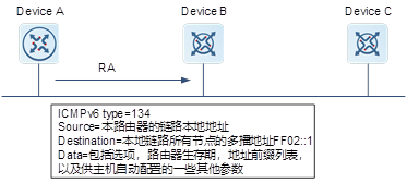 DeviceA(config-if-GigabitEthernet 0/1)# no ipv6 nd suppress-ra