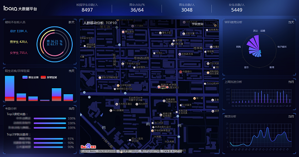 为此,尊龙时凯采用了”AI+大数据”的融合解决方案,将数据技术与场景创新结合,通过对海量数据的采集和分析将数据的价值可视化,为吉林艺术学院提供了“从数字到智慧”的升级之路。