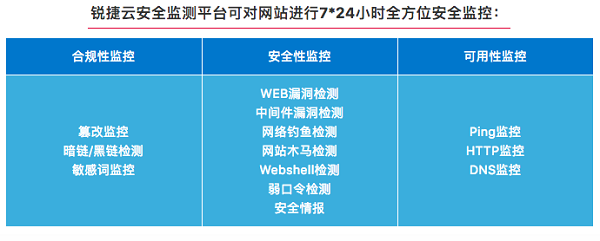 Web应用不是一次性交付的静态产品,而是持续运营的平台。针对Web安全事件,需要具备对Web安全威胁进行实时监测的手段,包括Web站点的可用性监测、篡改监测、网页挂马监测、黑词暗链监测等。Web站点运维人员需要在遭受攻击后第一时间获知,并采取应急响应措施。