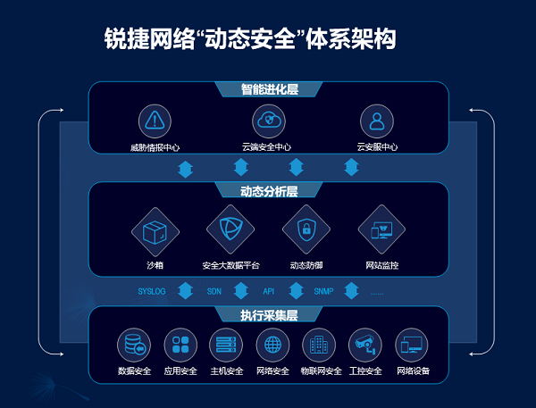 通过AI、大数据、云计算等技术为“执行采集层”和“动态分析层”提供安全能力的持续增强赋能,达成整网安全能力的可持续演进。