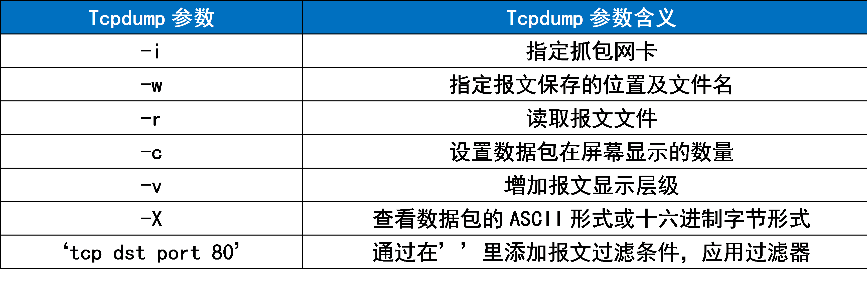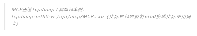 MCP可以通过Linux服务器上的Tcpdump工具进行抓包,可以在命令行下和WEB页面下进行报文捕获。如果说Wireshark是世界上流行的图形化数据包分析工具,那么Tcpdump是世界上流行的命令行数据包分析工具。通过SSH登录到MCP的Linux服务器上使用Tcpdump命令进行抓包,使用Tcpdump抓包后可以直接在命令行下进行分析或者将报文导出使用Wireshark进行分析,下表为大家整理了常用的Tcpdump命令参数。