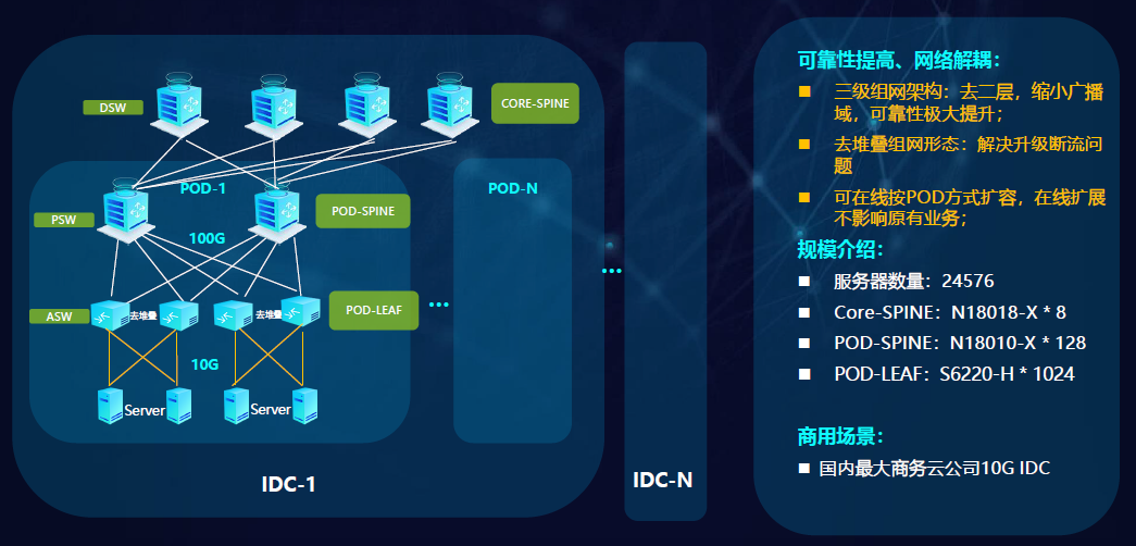 随着互联网进入云2.0时代,行业云兴起,更多的企业成为云化、数字化的主角,5G、云计算、工业互联网等新一代信息技术的应用离不开海量数据的处理、存储和软件的云化。如何继续提高数据中心规模化效益,构建更大规模的数据中心网络,是每个数据中心架构设计师都要面对的挑战。
