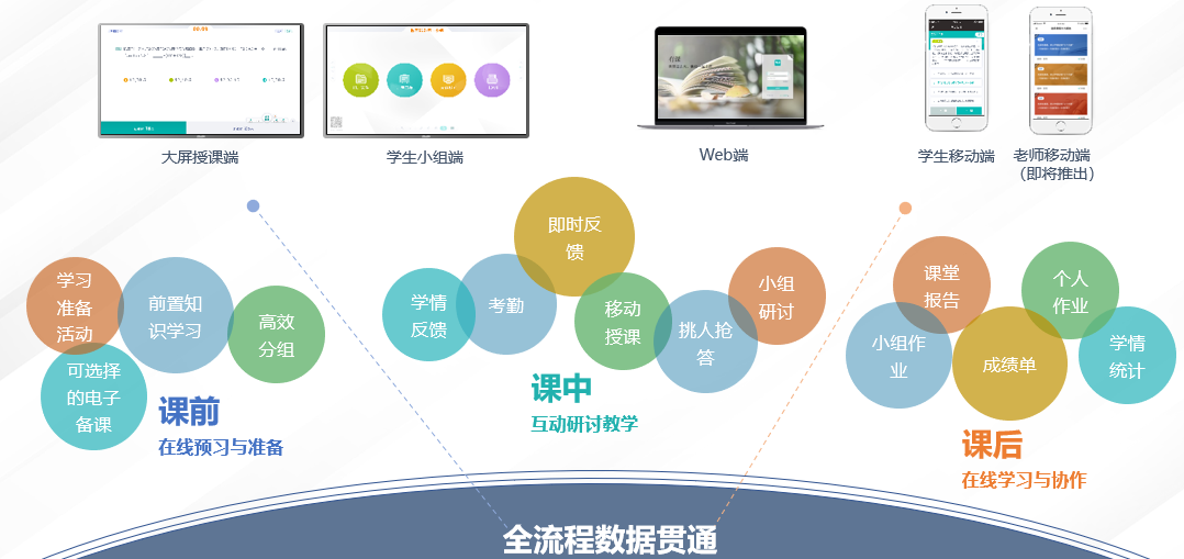 目前,市面上的教学软件虽多,但普遍难以同时满足线下课堂教学与线上课前课后教学需求,老师只能同时使用多个软件,这样不仅无法在一个软件实现完整教学设计,存放在不同软件的教学数据也无法打通。
