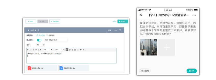 课后,有课平台可以将师生的线下行为,如发布作业、提交作业、批改作业等,搬到线上,实现一个平台的管理;学生作业成绩自动统计,老师对优秀作业可打“典型”标签,不好的作业可以被打回,贴心化设计节省了师生的沟通时间;小组作业的功能非常契合高校合作学习的需求。