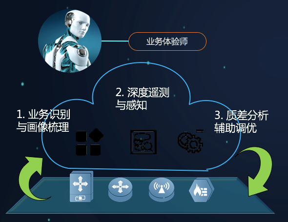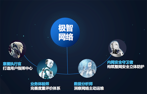 集成了SDN意图自动化网络+(网络专家/机器学习AI)分析系统+(可编程遥测)设备,运用数学形式化验证、网络遥测技术及AI算法、光模块异常发现和故障预测算法等关键技术,极简智能网络协助打造用户指挥中心、完善业务体验、大数据分析、主动运维、构筑安全立体防护。