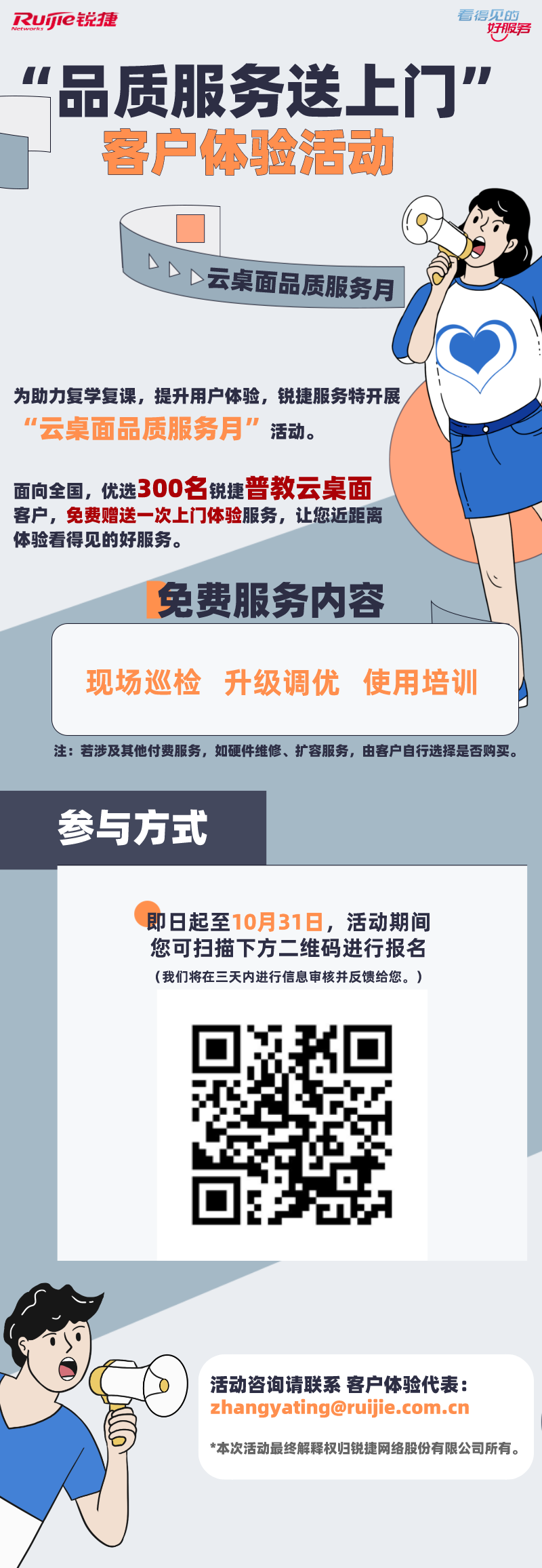 特面向全国征集、优选300名云桌面普教客户,免费赠送一次上门体验服务!