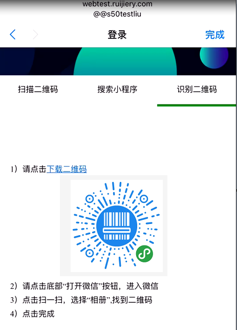 3)在portal页面上,将微信小程序的二维码页面下载到手机上,打开微信,选择扫一扫时,通过本地相册的二维码进行扫描进入小程序