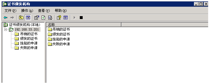 1) 在证书服务器中进入“控制面板”,打开“管理工具”,选择“证书颁发机构”