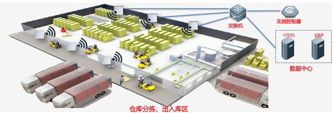 利用同频组网技术,用户可以根据仓储车间规模高密度布放AP,避免AP间干扰,解决出入库区货物堆放带来的信号阻隔问题。其次,将所有AP虚拟化成一台AP,库管人员在货架之间移动扫码时不再掉线,实现出入库区的零漫游。