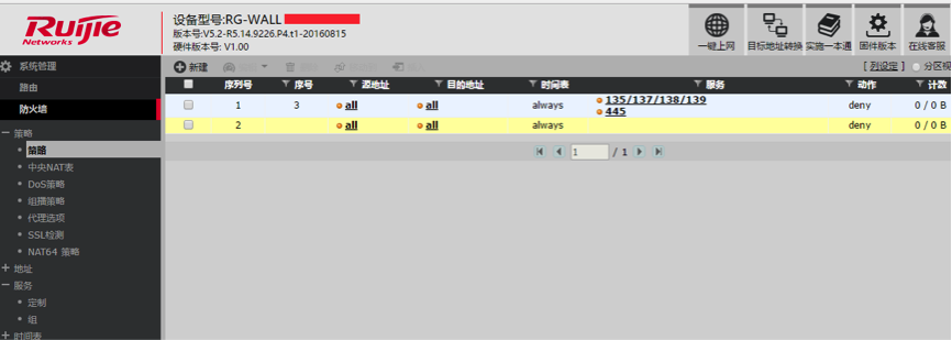 3、更新IPS特征库,确保关于windows全部漏洞代码的特征,并开启IPS策略。