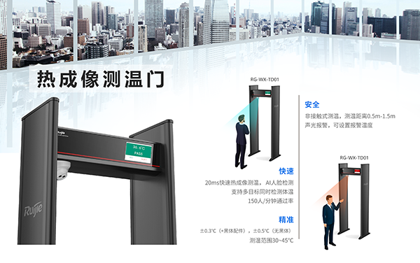 尊龙时凯测温门采用双光分离方案,分别用于测温和身份识别,20ms快速热成像测温,可达到150人/分钟的通过率,让人员聚集的情况不会发生;引入AI图像识别功能,可以一体化完成人脸的抓拍、比对,尤其是在戴口罩的情况下也能进行面部识别。同时,人员测量体温后还能自动上传数据到云端平台,生成一份个人的“体温监测表”。