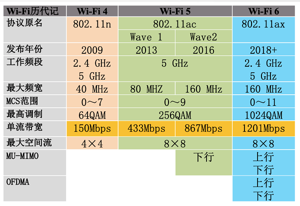 2018年10月4日,Wi-Fi联盟正式宣布将下一代Wi-Fi技术802.11ax更名为Wi-Fi 6,并将前两代技术802.11n和802.11ac分别更名为Wi-Fi 4和Wi-Fi 5。(本文后续都将以新名字来称呼802.11n/ac/ax)