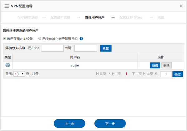 4)   对于VPN用户身份源,可以使用“本地账号”或“Radius服务器账号”,读者可以根据企业自身情况灵活选择
