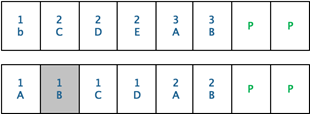 当修改数据发生时,如下图所示。LUN1将数据B修订成b,LUN2写入C、D、E,LUN3写入数据A、B。系统会将这些数据聚合成条带,计算校验值之后,写入后端磁盘,然后标记数据(1 B)为垃圾数据。